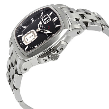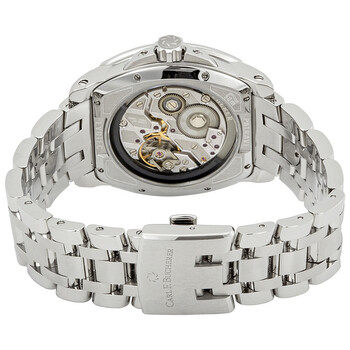 Stainless steel case with a stainless steel bracelet. Fixed stainless steel bezel. Black dial with luminous silver-tone hands and index hour markers. Minute markers around the outer rim. Dial Type: Analog. Luminescent hands and markers. Date display at the 11 o'clock position. 60 seconds sub-dial. Carl F. Bucherer calibre CFB A1003 automatic movement with a 55-hour power reserve. Scratch resistant sapphire crystal. Screw down crown. Transparent case back. Cushion case shape. Case dimensions: 39.25 mm x 38.54 mm. Case thickness: 12.9 mm. Fold over clasp with a push button release. Water resistant at 50 meters / 165 feet. Functions: date, hour, minute, second. Luxury watch style. Watch label: Swiss Made. Carl F. Bucherer Patravi EvoTec Automatic Men's Watch 00.10628.08.33.21.