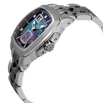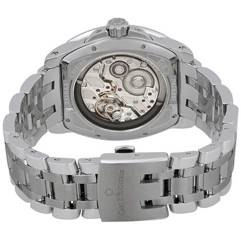 Stainless steel case with a stainless steel bracelet. Fixed stainless steel bezel. Mother of pearl and black dial with luminous silver-tone hands and alternating diamond and index hour markers. Minute markers around the outer rim. Dial Type: Analog. Luminescent hands. Date display at the 11 o'clock position. Small seconds sub-dial. Carl F. Bucherer calibre CFB A1003 automatic movement with a 55-hour power reserve. Scratch resistant sapphire crystal. Screw down crown. Transparent case back. Cushion case shape. Case dimensions: 38.54 x 39.25 mm. Case thickness: 12.9 mm. Fold over clasp with a push button release. Water resistant at 50 meters / 165 feet. Functions: date, hour, minute, second. Luxury watch style. Watch label: Swiss Made. Carl F. Bucherer Patravi EvoTec BigDate Automatic Diamond Men's Watch 00.10628.08.87.21.