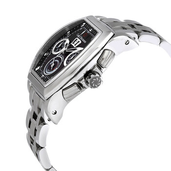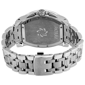 Stainless steel case with a stainless steel bracelet. Fixed stainless steel bezel. Black dial with silver-tone hands and index hour markers. Minute markers around the outer rim. Dial Type: Analog. Luminescent hands and markers. Date display above center dial. Chronograph - two sub-dials displaying: 60 second and 30 minute. Power reserve indicator. Carl F. Bucherer calibre CFB 1960 automatic movement with a 42-hour power reserve. Scratch resistant sapphire crystal. Screw down crown. Transparent case back. Tonneau case shape. Case dimensions: 42 mm x 39 mm, case thickness: 13.8 mm. Fold over clasp with a safety release. Water resistant at 50 meters / 165 feet. Functions: chronograph, big date, hour, minute, second, power reserve indicator, day/night indicator. Patravi T-graph Series. Luxury watch style. Watch label: Swiss Made. Item Variations: 166.113.2. Carl F. Bucherer Patravi T-Graph Chronograph Automatic Men's Watch 00.10615.08.33.21.