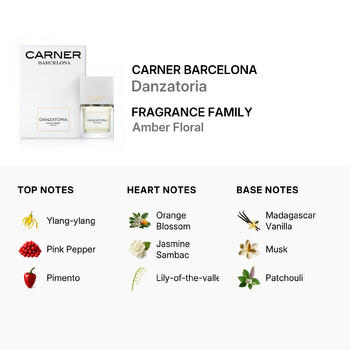 Designed by the renowned design house Carner Barcelona, Danzatoria is a testament to the brand's commitment to crafting fragrances that are bold, innovative, and reflective of the diverse world we live in. This EDP is a celebration of life's dances, both literal and metaphorical, inviting wearers to express themselves fully and without reservation. Whether you're stepping out for a night on the town or simply seeking to add a touch of elegance to your daily routine, Danzatoria is the perfect accessory.