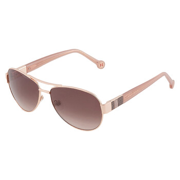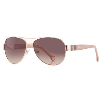 Carolina Herrera Sunglasses. Series number: HER 0135/S. Color code: 0DDB/HA. Shape: Navigator. Lens Width: 59 mm. Lens Bridge: 14 mm. Arm Length: 140 mm. 100% UV protection. Non-Polarized. Frame Material: Metal. Frame Color: Gold Copper. Lenses Type: Brown Gradient. Rim Style: Full-Rim. UPC/EAN code: 716736802459. Carolina Herrera Brown Gradient Navigator Ladies Sunglasses HER 0135/S 0DDB/HA 59.