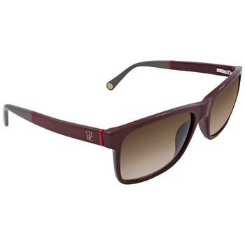 Carolina Herrera Sunglasses. Series number: SHE657. Color code: 0GFP. Shape: Rectangular. Lens Width: 56 mm. Lens Bridge: 18 mm. Arm Length: 145 mm. 100% UV protection. Frame Material: Metal. Frame Color: Violet. Lenses Type: Brown Gradient. Rim Style: Full-Rim. UPC/EAN code: 883663805577. Carolina Herrera Brown Gradient Rectangular Sunglasses SHE657 0GFP 56.