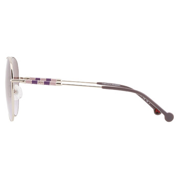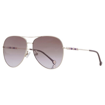 Carolina Herrera Sunglasses. Series number: CH 0034/S. Color code: 03YG/QR. Shape: Pilot. Lens Width: 64 mm. Lens Bridge: 13 mm. Arm Length: 145 mm. 100% UV protection. Non-Polarized. Frame Material: Stainless Steel. Frame Color: Light Gold. Lenses Type: Brown Violet. Rim Style: Full-Rim. UPC/EAN code: 716736723020. Carolina Herrera Brown Violet Pilot Ladies Sunglasses CH 0034/S 03YG/QR 64.