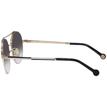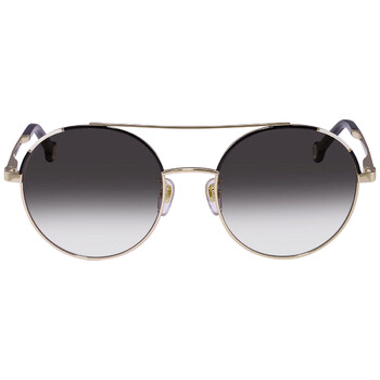Carolina Herrera Sunglasses. Series number: SHE173. Color code: 0301. Shape: Round. Lens Width: 53 mm. Lens Bridge: 19 mm. Arm Length: 140 mm. 100% UV protection. Non-Polarized. Frame Material: Metal. Frame Color: Gold. Lenses Type: Gradient Grey. Rim Style: Full-Rim. UPC/EAN code: 190605294383. Carolina Herrera Gradient Grey Round Ladies Sunglasses SHE173 0301 53.