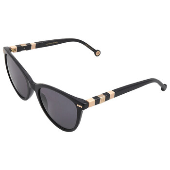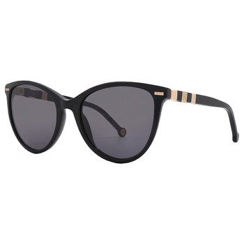 Carolina Herrera Sunglasses. Series number: HER 0107/S. Color code: 0KDX/IR. Shape: Cat Eye. Lens Width: 57 mm. Lens Bridge: 20 mm. Arm Length: 145 mm. 100% UV protection. Non-Polarized. Frame Material: Acetate. Frame Color: Black Nude. Lenses Type: Grey. Rim Style: Full-Rim. UPC/EAN code: 716736748719. Carolina Herrera Grey Cat Eye Ladies Sunglasses HER 0107/S 0KDX/IR 57.