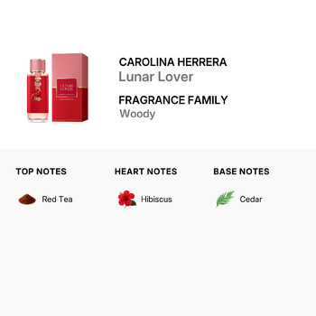 Part of the woody fragrance family, Lunar Lover opens with the warm and inviting aroma of red tea. At its heart, the delicate yet bold scent of hibiscus blooms, adding a floral touch that evokes pure romance. The base note of rich cedar grounds the fragrance, leaving behind a trail of earthy sophistication that lingers throughout the day.
