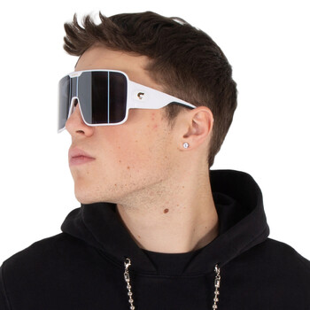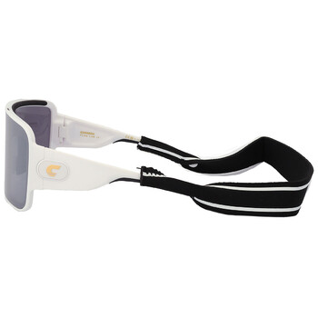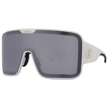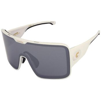 Carrera Sunglasses. Series number: FLAGLAB 15. Color code: 0VK6/T4. Shape: Shield. Lens Width: 99 mm. Lens Bridge: 01 mm. Arm Length: 130 mm. 100% UV protection. Non-Polarized. Frame Material: Plastic. Frame Color: White. Lenses Type: Silver Mirror. Rim Style: Full-Rim. UPC/EAN code: 716736849683. Carrera Silver Mirror Shield Unisex Sunglasses FLAGLAB 15 0VK6/T4 99.