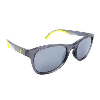Carrera Sunglasses. Series number: CARRERA 8054/S. Color code: 0KB7/T4. Shape: Square. Lens Width: 52 mm. Lens Bridge: 21 mm. Arm Length: 145 mm. 100% UV protection. Frame Material: Plastic. Frame Color: Transparent Grey. Lenses Type: Silver Mirror. Rim Style: Full-Rim. UPC/EAN code: 716736709680. Carrera Silver Mirror Square Unisex Sunglasses CARRERA 8054/S 0KB7/T4 52.