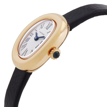 Baignoire Jewellery Watches Panthere Jewellery Bracelet Sm Gold-tone 18kt yellow gold case with a black calfskin band. Fixed gold-tone 18kt yellow gold bezel. Silver dial with blue hands and Roman numeral hour markers. Quartz movement. Scratch resistant sapphire crystal. Solid case back. Case size: 24.6mm x 18.7mm, case thickness: 7.2mm. Tang clasp. Water resistant at 30 meters / 100 feet. Functions: hour, minute. Baignoire Series. Dress watch style. Watch label: Swiss Made. Cartier Baignoire Mini Model Silver Dial Watch WGBA0041.