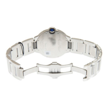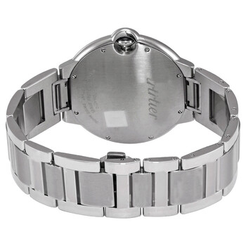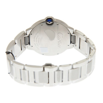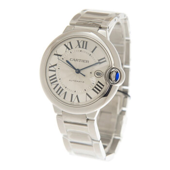 Stainless steel case with a stainless steel bracelet. Fixed stainless steel bezel. White dial with blued-steel sword-shaped hands and Roman numeral hour markers. Minute markers around an inner ring. Dial Type: Analog. Date display at the 3 o'clock position. Carier calibre 1847 MC automatic movement with a 42-hour power reserve. Scratch resistant sapphire crystal. Cabochon crown. Solid case back. Round case shape. Case size: 42 mm. Case thickness: 13 mm. Fold over clasp. Water resistant at 30 meters / 100 feet. Functions: date, hour, minute, second. Ballon Bleu Series. Luxury watch style. Watch label: Swiss Made. Cartier Ballon Bleu Automatic White Dial Unisex Watch WSBB0049.