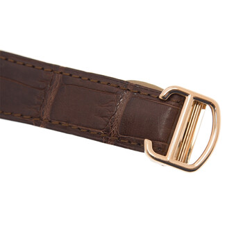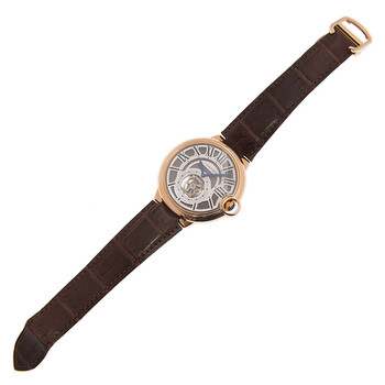 18kt pink gold case. Brown alligator bracelet. Galvanic, slate colored guilloche with a sunray silver dial - open worked grid showing Roman numerals and blued-steel hands. Fixed bezel. Scratch resistant sapphire crystal. Circular-grained crown set with a sapphire cabochon and a transparent case-back of sapphire crystal. Dual adjustment folding clasp. 45mm case diameter. 4.9mm case thickness. Automatic movement. 50-hour power reserve.