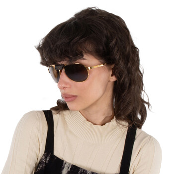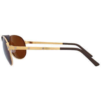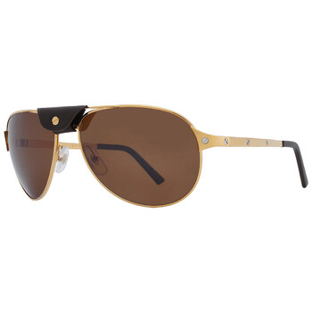 Cartier Sunglasses. Series number: CT0074S. Color code: 003. Shape: Pilot. Lens Width: 61 mm. Lens Bridge: 16 mm. Arm Length: 135 mm. 100% UV protection. Non-Polarized. Frame Material: Metal. Frame Color: Gold with Brown Leather. Lenses Type: Brown. Rim Style: Full-Rim. UPC/EAN code: 843023103682. Cartier Brown Pilot Unisex Sunglasses CT0074S 003 61.