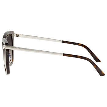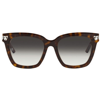 Cartier Sunglasses. Color code: 002. Color: Silver/Gray. Size: 51. Shape: Cat Eye. Lens Width: 51 mm. Lens Bridge: 18 mm. Arm Length: 145 mm. 100% UV protection. Non-Polarized. Frame Material: Acetate. Frame Color: Havana. Lenses Type: Grey Gradient. UPC/EAN code: 843023102210. Cartier Grey Gradient Cat Eye Ladies Sunglasses CT0025SA 51 002.