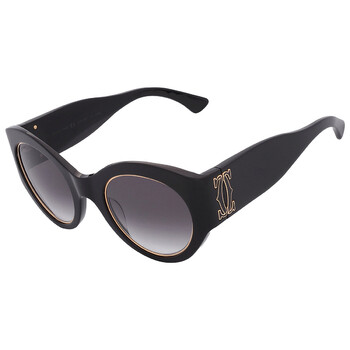 Cartier Sunglasses. Series number: CT0305S. Color code: 001. Shape: Oval. Lens Width: 51 mm. Lens Bridge: 26 mm. Arm Length: 135 mm. 100% UV protection. Non-Polarized. Frame Material: Acetate. Frame Color: Black/Gold. Lenses Type: Grey Gradient. Rim Style: Full-Rim. UPC/EAN code: 843023154998. Cartier Grey Gradient Oval Ladies Sunglasses CT0305S 001 51.