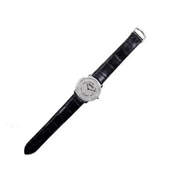 18 carat white gold case with a black semi-matte alligator leather strap. Diamond set fixed bezel. 18k white gold diamond dial with blued steel hands and Roman numeral hour markers. Minute markers around the inner rim. Dial Type: Analog. Hand wind movement. Scratch resistant sapphire crystal. Skeleton transparent exhibition see through case back. Case diameter: 36 mm. Case thickness: 7.01 mm. Round case shape. Deployment clasp. Water resistant at 30 meters / 100 feet. Functions: hour, minute. Luxury watch style. Watch label: Swiss Made. Cartier Ronde Louis 18K White Gold Diamond Dial Men's Watch WR007007.