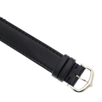 Silver-tone stainless steel case with a black leather strap. Fixed silver-tone stainless steel bezel. Silver-tone dial with blued-steel sword-shaped hands and Roman numeral hour markers. Minute scale around the inner rim. Dial Type: Analog. Quartz movement. Scratch resistant sapphire crystal. Cabochon crown. Round case shape, case size: 29 mm. Water resistant at 30 meters / 100 feet. Functions: hour, minute. Additional Info: original box, international warranty card, manual (complete accessories). Ronde Must De Cartier Series. Luxury watch style. Watch label: Swiss Made. Cartier Ronde Must De Cartier Quartz Silver Dial Ladies Watch WSRN0030.