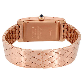 18kt pink gold case with a 18kt pink gold bracelet. Fixed 18kt pink gold bezel. Silvered flinque dial with blued steel hands and Roman numeral hour markers. Minute markers around an inner ring. Dial Type: Analog. Date display at the 6 o'clock position. Cartier calibre 077 automatic movement with a 42-hour power reserve. Scratch resistant sapphire crystal. Solid case back. Case dimensions: 41.6 mm x 22.6 mm. Case thickness: 9.65 mm. Rectangle case shape. Deployment clasp. Water resistant at 30 meters / 100 feet. Functions: date, hour, minute, second. Luxury watch style. Watch label: Swiss Made. Cartier Tank Americaine Silvered Flinque Dial Ladies Watch W2620032.