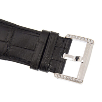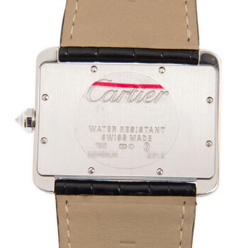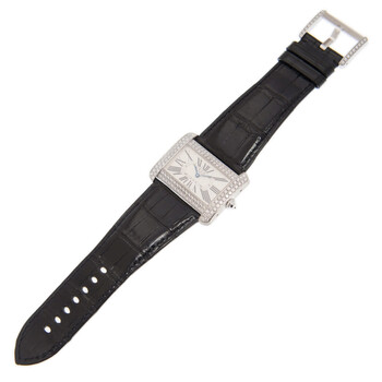 18kt white gold case with a black leather strap. Fixed 18kt white gold diamond set bezel. Cream dial with blued-steel sword-shaped hands and black Roman numeral hour markers. Minute scale around the inner rim. Dial Type: Analog. Automatic movement. Scratch resistant sapphire crystal. Solid case back. Rectangle case shape, case size: 38 mm x 28 mm, case thickness: 7 mm. Tang clasp. Water resistant at 30 meters / 100 feet. Functions: hour, minute. Tank divan series. Luxury watch style. Watch label: Swiss Made. Cartier Tank Divan Cream Dial Ladies 18 Carat White Gold Diamond Watch WA301370.