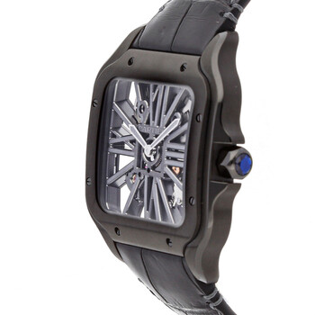 Black stainless steel case with a black leather strap. Fixed black stainless steel bezel. Black dial with black hands and Roman numeral hour markers. Dial Type: Analog. Luminescent hands. Cartier Calibre 9612 MC automatic movement with a 72-hour power reserve. Scratch resistant sapphire crystal. Cabochon crown. Transparent case back. Square case shape, case size: 39.8 mm. Deployment with push button release clasp. Water resistant at 100 meters / 330 feet. Functions: hour, minute. Whsa0009 Series. Dress watch style. Watch label: Swiss Made. Cartier WHSA0009 Black Dial Unisex Watch WHSA0009.