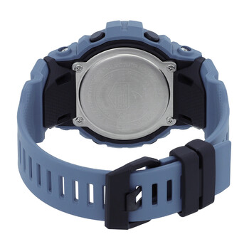 Carbon case with a resin strap. Fixed resin bezel. Black hands and index hour markers. Dial Type: Analog-digital. Luminescent neobrite, double led light. Day of the week and date display at the 6 o'clock position. Quartz movement. Solid case back. Round case shape, case size: 51.2 x 48.7 mm, case thickness: 14.1 mm. Buckle clasp. Water resistant at 200 meters / 660 feet. Functions: date, day, hour, minute, second, dual time, stopwatch, countdown timer, hand shift feature, 5 daily alarms, 12/24-hour frmat. Additional Info: mobile link (wireless linking using bluetooth(r)). G-shock Series. Sport watch style. Casio G-Shock Alarm Quartz Analog-Digital Men's Watch GBA-800UC-2ADR.