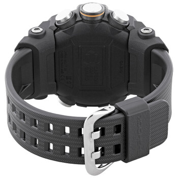 Black resin case with a black resin strap. Fixed black resin bezel. Black dial with luminous silver-tone hands and index hour markers. Arabic numerals appear at the 3, 6, 9 and 12 o'clock poisitions. Minute markers around the outer rim. Dial Type: Analog-Digital. Luminescent hands and markers. Perpetual calendar. Digital display showing: compass. Casio calibre 5594 quartz movement. Scratch resistant mineral crystal. Screw down crown. Solid case back. Round case shape. Case dimensions: 55.4 mmx 53.1 mm. Case thickness: 19.3 mm. Tang clasp. Water resistant at 200 meters / 660 feet. Functions: perpetual calendar, chronograph, world time, alarm, year, month, date, day, GMT, second time zone, hour, minute, second. G-shock Series. Sport watch style. Watch label: Japan Movt. Casio G-Shock Perpetual Alarm World Time Chronograph Quartz Analog-Digital Black Dial Men's Watch GGB100-1A.