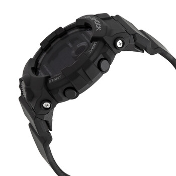 Black resin case and strap. Fixed black resin bezel. Digital dial. Dial Type: digital. Full auto calendar. Casio Calibre 3464 quartz movement. Scratch resistant mineral crystal. Solid case back. Round case shape, case size: 54.1 x 48.6 mm, case thickness: 15.5 mm. Buckle clasp. Water resistant at 200 meters / 660 feet. Functions: perpetual calendar, chronograph, world time, alarm, year, month, date, day, GMT, second time zone, hour, minute, second. Premier G-shock Series. Sport watch style. Watch label: Japan Movt. Casio Premier G-Shock Perpetual Alarm World Time Chronograph Quartz Digital Men's Watch GBD800-1B.