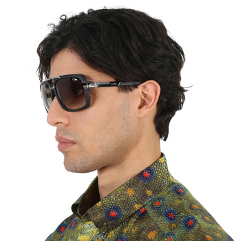 Cazal Sunglasses. Series number: CAZAL 8042. Color code: 002. Shape: Navigator. Lens Width: 61 mm. Lens Bridge: 14 mm. Arm Length: 142 mm. 100% UV protection. Non-Polarized. Frame Material: Plastic;Metal. Frame Color: Black/Silver. Lenses Type: Grey Gradient. Rim Style: Full-Rim. UPC/EAN code: 4251386521696. Cazal Grey Gradient Navigator Unisex Sunglasses CAZAL 8042 002 61.