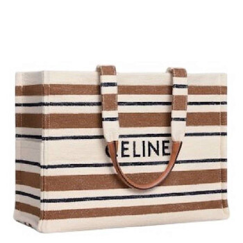 Celine Ladies Tote. SKU: 196762FO2.14ML. Color: Multicolor. Size: 16" x 12" x 6". Celine Cabas Thais In Striped Celine Jacquard Textile. The bag features a gold finishing and is designed for shoulder carry. It has one main compartment, one inner flat pocket, and two outer flat pockets on the sides. The bag also includes handles for easy carrying and is made from calfskin.
