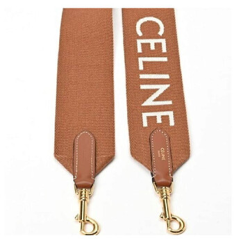 Celine Ladies Bag Accessories. SKU: 49S012AEP.04LV. Barcode: 3665951759789. Material: Calfskin;Wool. Closure Type: Hook. Color: Tan/White. Size: 92cm x 6cm. Celine Jacquard Long Bag Strap. This bag strap, equipped with two metallic hooks, is designed for cross-body and shoulder carry and can be used with any bags that have hook attachments. Material: wool, trimmings in calfskin.