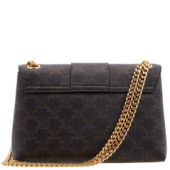 Celine Ladies Crossbody. SKU: 115852FRH.04LU. Barcode: 3616900489493. Color: Tan. Size: Medium Celine Victoire Bag in Triomphe Canvas - TAN - SHOULDER BAGS - 2 | CELINE. Celine Medium Celine Victoire Bag - Tan. Crafted from Triomphe Canvas, this bag features a luxurious lambskin lining and gold finishing. It offers versatile cross-body and shoulder carry options and is secured with a Triomphe snap button closure. The bag includes two main compartments, one inner flat pocket, and one inner central zipped pocket for added organization. The sliding chain has a minimum drop of 10 inches (29 cm) and a maximum drop of 19 inches (50 cm), allowing for adjustable wear.