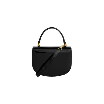 Celine Ladies Crossbody. SKU: 10L063GCJ.38NO. Color: Black. Size: 6" x 5" x 2". Celine Patent Calfskin Mini Besace Clea Crossbody Bag. The Clea bag, made from luxurious calfskin with a soft lambskin lining, showcases a Triomphe metallic snap button closure and offers versatile carrying options, including hand, shoulder, and cross-body wear. Designed for functionality, it features a spacious main compartment, two inner flat pockets, a leather handle with a 2" drop, and a removable, adjustable strap with a drop ranging from 20" to 23". 100% Calfskin. Made in Italy.