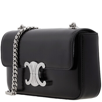 Celine Ladies Shoulder Bag. SKU: 115203BF4.38SI. Color: Black. Size: 8" x 5" x 2". Celine Shiny Calfskin Claude Chain Shoulder Bag. The Claude bag boasts a refined calfskin exterior paired with a supple lambskin lining, elegantly accented by silver finishing and a signature Triomphe metallic closure. Designed for shoulder wear, it features a 12-inch (30 cm) chain strap drop, a spacious main compartment, and an inner flat pocket for effortless organization. 100% Calfskin. Made in Italy.