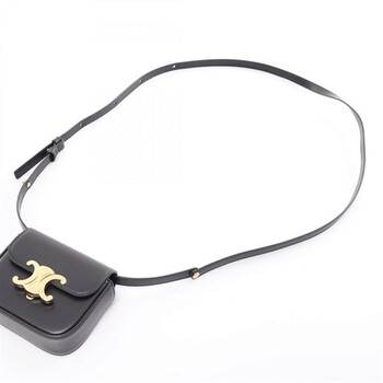 Celine Ladies Mini Bag. SKU: 10I513DPV.38NO. Barcode: 3665951619328. Color: Black. Size: 5" x 4" x 2". Celine Shiny Calfskin Mini Claude Bag. The Mini Claude bag in calfskin features gold finishing, a Triomphe metallic snap button closure, one main compartment, an inner flat pocket, and a removable, adjustable strap with a drop of 18–22 inches (45–55 cm) for versatile hand, shoulder, or cross-body carry, secured under the flap via leather loops with a snap button. 100% Calfskin.