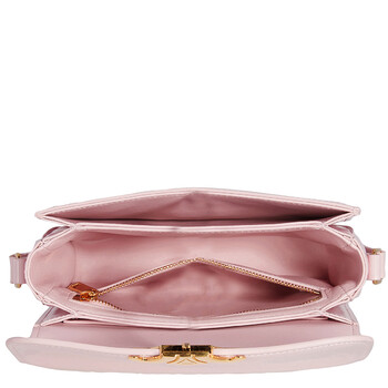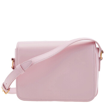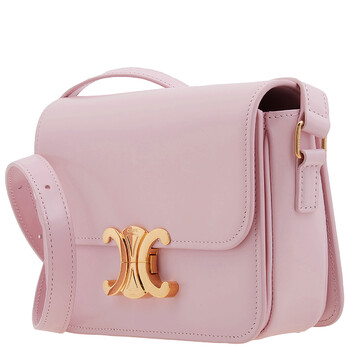 Celine Ladies Shoulder Bag. Triomphe series. SKU: 188423BF424PP. Barcode: 3616900555754. Color: Rose. Size: 7" x 5" x 3". Celine Shiny Calfskin Teen Triomphe Shoulder Bag. Celine Teen Triomphe Bag crafted in calfskin leather, lambskin lining and gold-tone metal hardware. This shoulder bag features 1 main compartment, 1 wall slip pocket, 1 front slip pocket, a flap with a triomphe metallic closure and an adjustable strap with a drop range of 14 to 20 inches, allowing for both cross-body and shoulder carry. Material: Calfskin.