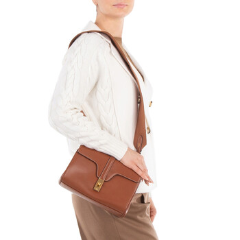 Celine Ladies Shoulder Bag. SKU: 196853CR4.04LU. Color: Tan. Size: 9" x 6" x 4". Celine Smooth Calfskin Teen Soft 16 Bag. This bag is made of smooth calfskin with a calfskin lining, featuring a twist closure, two internal compartments, an inner zipper pocket, and a detachable textile strap (52 cm). 100% Calfskin. Made in Italy.