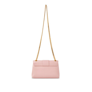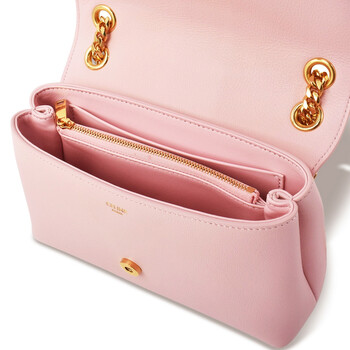 Celine Ladies Crossbody. SKU: 116593FDU.24PP. Barcode: 3616900556614. Color: Pastel Pink. Size: 9" x 6" x 3". Celine Supple Calfskin Teen Celine Victoire Bag. The Victoire bag is crafted from calfskin with a lambskin lining, gold finishing, and a Triomphe snap button closure. It includes two main compartments, a flat inner pocket, and a central zipped pocket, while its sliding chain offers an adjustable drop ranging from 10 inches (29 cm) to 19 inches (50 cm), making it versatile for both cross-body and shoulder wear. 100% Calfskin.