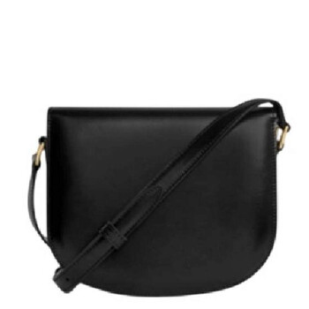 Celine Ladies Crossbody. SKU: 110413BF4.38NO. Color: Black. Size: 7" x 6" x 2". Celine Triomphe Besace Bag. This bag features a gold finish with cross-body and shoulder carry options, a metallic Triomphe closure, three inner compartments, a zipped pocket, and a flat pocket. The adjustable strap ensures comfort, and it's crafted from calfskin with a lambskin lining.