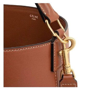 Celine Ladies Bucket Bag. SKU: 113783DU3.04LU. Color: Tan. Size: H 8.66" x W 6.69" x D 3.94". Celine Triomphe Bucket Bag. The bag features an adjustable shoulder strap for a custom fit, a secure press-stud closure, and a spacious main interior compartment. It also includes a handy interior flat pocket for essentials. Made from 100% Calfskin.