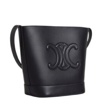 Celine Ladies Bucket Bag. SKU: 113783DU3.38NO. Color: Black. Size: 7" x 9" x 4". Celine Triomphe Cuir Bucket Bag. This bag features a gold finish and offers both crossbody and shoulder carry. It is secured with a snap closure and includes one main compartment, one inside flat pocket, and an adjustable shoulder strap. Made from cowhide leather.