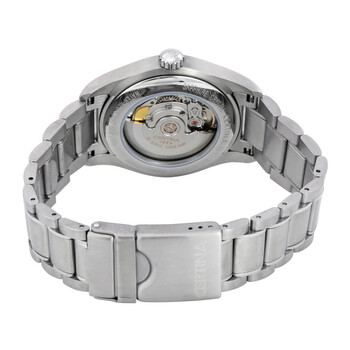 Grey titanium case and bracelet. Fixed grey titanium bezel. Blue dial with solid hands and index hour markers. Minute markers around the outer rim. Dial Type: Analog. Date display between the 4 and 5 o'clock positions. ETA caliber 2824-2 automatic movement with a 38-hour power reserve. Scratch resistant sapphire crystal. Push / pull crown. Skeleton case back. Case size: 39 mm. Case thickness: 12 mm. Round case shape. Band width: 20 mm. Band length: 8 inches. Deployment clasp with a push button release. Water resistant at 100 meters / 330 feet. Functions: date, hour, minute, second. Casual watch style. Watch label: Swiss Made. Certina DS 1 - 3 Hands Titanium Men's Automatic Watch C0064074404100.