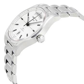 Stainless steel case with a stainless steel bracelet. Fixed stainless steel bezel. Silver dial with luminous hands and index hour markers. Minute markers around the outer rim. Dial Type: Analog. Luminescent hands and markers. Date display at the 6 o'clock position. day of the week display centered on the 12 o'clock position. ETA caliber 2834-2 automatic movement, containing 25 Jewels, bitting at 28800 vph, and has a power reserve of approximately 38 hours. Scratch resistant sapphire crystal. Screw down crown. Transparent case back. Round case shape. Case size: 39 mm. Case thickness: 13 mm. Band width: 20 mm. Fold over clasp with a safety release. Water resistant at 100 meters / 330 feet. Functions: date, day, hour, minute, second. Ds-1 Day-date Automatic Series. Dress watch style. Watch label: Swiss Made. Certina DS 1 Day Date Automatic Ladies Watch C0064301103100.