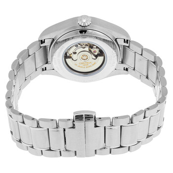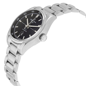 Stainless steel case with a stainless steel bracelet. Fixed stainless steel bezel. Black dial with silver-tone hands and index hour markers. Minute markers. Arabic numeral minute markers (at 5 minute intervals) around the outer rim. Dial Type: Analog. Date display above the 6 o'clock position. ETA caliber 2671 automatic movement, containing 25 Jewels, bitting at 28800 vph, and has a power reserve of approximately 38 hours. Scratch resistant sapphire crystal. Transparent case back. Round case shape. Case size: 30 mm. Case thickness: 11 mm. Band width: 15 mm. Band length: 7.5 inches. Deployment clasp with a push button release. Water resistant at 100 meters / 330 feet. Functions: date, hour, minute, second. DS-1 Lady Series. Casual watch style. Watch label: Swiss Made. Certina DS 1 Lady Automatic Black Dial Ladies Watch C0062071105100.
