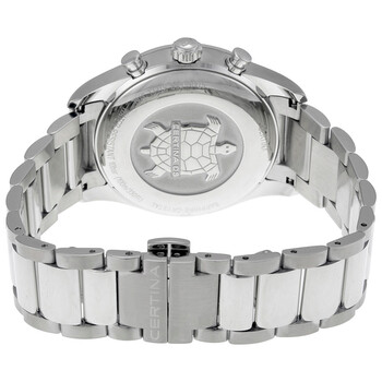 Stainless steel case with a stainless steel bracelet. Fixed stainless steel bezel with a black top ring showing tachymeter markings. Silver dial with luminous black hands and index hour markers. Minute markers around the outer rim. Dial Type: Analog. Luminescent hands and markers. Date display at the 6 o'clock position. Chronograph - three sub-dials displaying: 60 second, 30 minute and 12 hour. Quartz movement. Scratch resistant sapphire crystal. Push / pull crown. Solid case back. Case size: 41 mm. Case thickness: 12.95 mm. Round case shape. Fold over clasp. Water resistant at 100 meters / 330 feet. Functions: chronograph, tachymeter, date, hour, minute, second. Casual watch style. Certina DS 2 Chronograph Silver Dial Men's Watch C024.447.11.031.01.