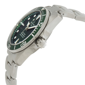 Silver-tone stainless steel case and bracelet. Uni-directional rotating silver-tone stainless steel bezel with an inlaid green ring. Green dial with silver-tone hands and dots hour markers. Minute markers around the outer rim. Dial Type: Analog. Luminescent hands and markers. Date display at the 3 o'clock position. POWERMATIC 80.611 automatic movement with an 80-hour power reserve. Scratch resistant sapphire crystal. Screw down crown. Solid case back. Round case shape, case size: 38 mm, case thickness: 12.2 mm. Band width: 19 mm. Fold over clasp with a safety release. Water resistant at 300 meters / 1000 feet. Functions: date, hour, minute, second. Ds Action Series. Dress watch style. Watch label: Swiss Made. Certina DS Action Automatic Green Dial Men's Watch C0328071109100.