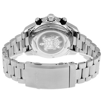 Stainless steel case with a stainless steel bracelet. Uni-directional rotating stainless steel bezel with a blue aluminium (count-up elapsed time) top ring. Blue dial with luminous silver-tone hands and dot hour markers. Minute markers around the outer rim. Dial Type: Analog. Luminescent hands and markers. Date display at the 6 o'clock position. Chronograph - three sub-dials displaying: 60 second, 30 minute and 1/10th of a second. ETA caliber G10.212 AA quartz movement. Scratch resistant sapphire crystal. Screw down crown. Solid case back. Round case shape. Case size: 43 mm. Case thickness: 14 mm. Band width: 18 mm. Deployment clasp with a push button release. Water resistant at 300 meters / 1000 feet. Functions: chronograph, date, hour, minute, second. DS Action Chronograph Series. Dive watch style. Watch label: Swiss Made. Certina DS Action Chronograph Blue Dial Men's Watch C032.417.11.041.00.
