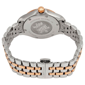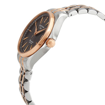 316L stainless steel case with a two-tone (silver-tone and rose gold PVD) 316L stainless steel bracelet. Fixed rose gold PVD bezel. Grey dial with rose gold-tone hands and index hour markers. Minute markers around the outer rim. Dial Type: Analog. Date display at the 3 o'clock position. Quartz movement. Scratch resistant sapphire crystal. Pull / push crown. Solid case back. Round case shape. Case size: 33.8 mm. Case thickness: 9.1 mm. Band width: 15 mm. Fold over clasp with a safety release. Water resistant at 200 meters / 660 feet. Functions: date, hour, minute, second, chronometer, precidrivetm. Ds Action Series. Dress watch style. Watch label: Swiss Made. Certina DS Action Quartz Chronometer Grey Dial Ladies Watch C032.051.22.086.00.