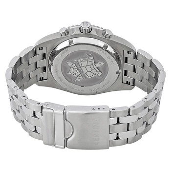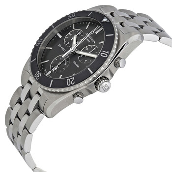 Titanium case with a grey titanium bracelet. Rotating black ceramic bezel. Black dial with luminous hands and index hour markers. Minute markers around the outer rim. Dial Type: Analog. Date display at the 6 o'clock position. Three - 60 seconds, 1/10th seconds and 12 hour subdials. Quartz movement. Scratch resistant sapphire crystal. Screw down crown. Solid case back. Case size: 41 mm. Round case shape. Deployment with push button release clasp. Water resistant at 200 meters / 660 feet. Functions: chronograph, date, hour, minute, second. Sport watch style. Watch label: Swiss Made. Item Variations: C0144174408100. Certina DS First Ceramic Titanium Men's Quartz Watch C014.417.44.081.00.
