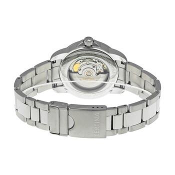 Silver-tone stainless steel case and bracelet. Fixed silver-tone stainless steel bezel. Gray dial with luminous silver-tone hands and index hour markers. Arabic numerals mark the 3, 9 and 12 o'clock positions. Minute markers around the outer rim. Dial Type: Analog. Luminescent hands and markers. Date display at the 6 o'clock position. Certina Calibre Powermatic 80 (ETA C07.111) Automatic movement, based upon ETA 2824-2, containing 23 Jewels, bitting at 21600 vph, and has a power reserve of approximately 80 hours. Scratch resistant sapphire crystal. Pull / push crown. Transparent case back. Round case shape, case size: 38 mm. Band width: 19 mm, band length: 8 inches. Fold over clasp with a safety release. Water resistant at 100 meters / 330 feet. Functions: date, hour, minute, second. Ds Podium Series. Sport watch style. Watch label: Swiss Made. Item Variations: C001 407 11 087 00, C001-407-11-087-00, C001/407/11/087/00, C0014071108700. Certina DS Podium Automatic Grey Dial Men's Watch C001.407.11.087.00.