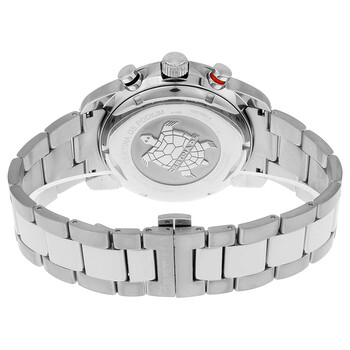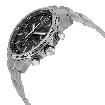 Titanium case with a titanium bracelet. Fixed titanium bezel showing tachymeter markings. Grey dial with luminous hands and index hour markers. An Arabic numerals mark the 3, 9 and 12 o'clock positions. Minute markers. 1/100th markers around the outer rim. Dial Type: Analog. Luminescent hands and markers. Date display above the 6 o'clock position. Chronograph - three sub-dials displaying: 60 second, 30 minute and 12 hour. Quartz movement. Scratch resistant sapphire crystal. Screw down crown. Solid case back. Case diameter: 44 mm. Case thickness: 13.5 mm. Round case shape. Bracelet width: 20 mm. Fold over clasp. Water resistant at 200 meters / 660 feet. Functions: chronograph, GMT, date, hour, minute, second. Casual watch style. Watch label: Swiss Made. Certina DS Podium Big Size Chronograph Grey Dial Titanium Men's Watch C0016474408700.