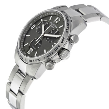 Stainless steel titanium case and bracelet. Fixed silver-tone bezel showing tachymeter markings. Grey dial with luminous hands and index hour markers. Arabic numerals mark the 3, 9 and 12 o'clock positions. Minute markers around the outer rim. Dial Type: Analog. Date display at the 6 o'clock position. Chronograph - three sub-dials displaying: 60 second, 30 minute and 1/10th of a second. Quartz movement. Scratch resistant sapphire crystal. Solid case back. Case size: 40 mm. Round case shape. Folding clasp. Water resistant at 100 meters / 330 feet. Functions: chronograph, date, hour, minute, second. Sport watch style. Watch label: Swiss Made. Certina DS Podium Chronograph Stainless Steel Men's Quartz Watch C0014174408700.
